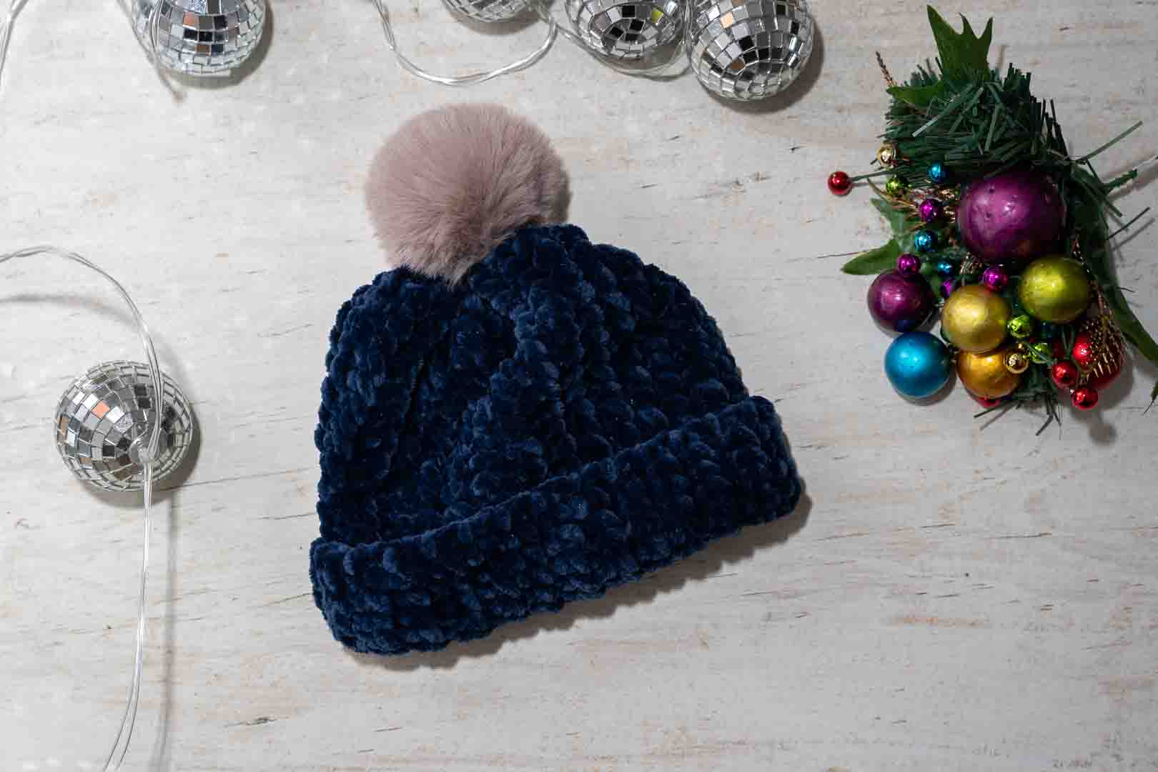 Handmade Cozy Crochet Beanies with Velvet Yarn & Double Pom Poms – For Babies & Children
