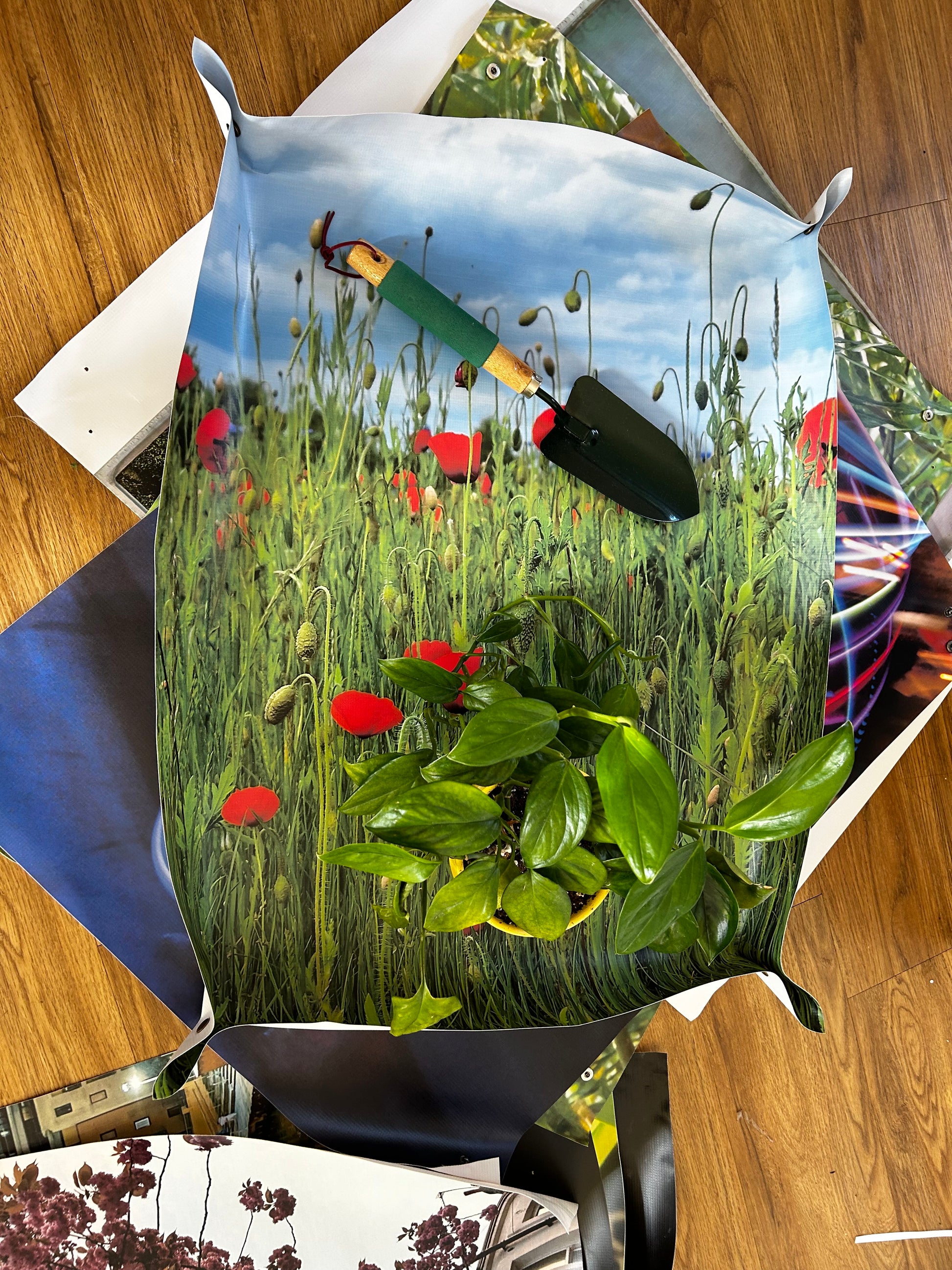The approximately 51 x 71 cm (when flat) potting mat is waterproof, and made from a flexible fabric. Handy poppers on the corners help to contain any spilt soil or compost. When you've finished repotting just tip off any excess soil. The mat can be rolled up and secured with the included tie and put away until the next time you need to repot your plants.